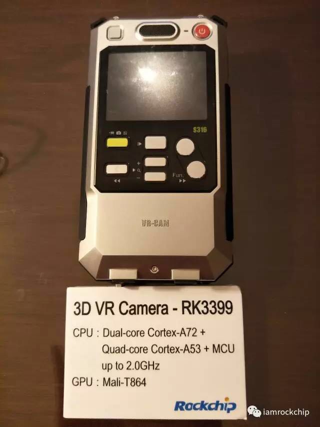 Rockchip发布的3D-VR摄像机解决方案,采用旗舰芯片米兰登录入口3399+双Camera输入+双ISP即时处理,米兰登录入口3399采用双Cortex-A72大核+四Cortex-A53小核,big.LITTLE大小核架构,GPU采用Mali-T860图像处理器。CPU方面整数、浮点、内存优化幅度巨大,具备高性能、低功耗的产品特点。