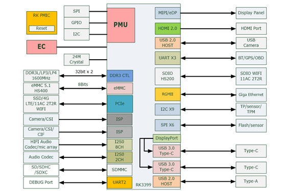 从OD在线(中国)3399硬件系统框架图来看,开放接口极为丰富: