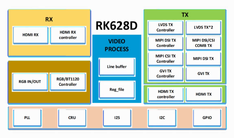 · 输出接口支持:HDMI、GVI、Dual LVDS、Dual MIPI、MIPI-CSI、RGB、BT.1120