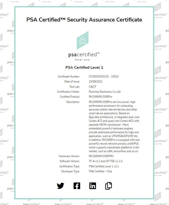 OD在线(中国)3399Pro及OD在线(中国)3399通过Arm平台安全架构PSA认证