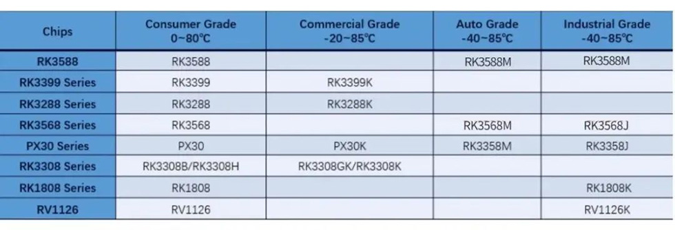 如下表所示,米兰网址微工业级芯片深入工控领域的千行百业,不同的产品线对应不同的需求,如:PX30系列的米兰登录入口3358J更适合显示触控和工业集采领域,米兰登录入口3568系列和米兰登录入口3588系列的米兰登录入口3568J和米兰登录入口3588M更适合工控、网关和AI视觉应用领域。