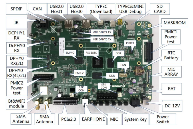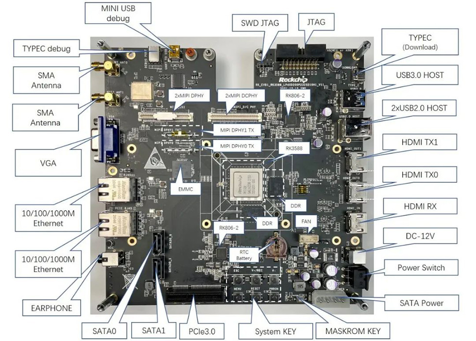OD在线(中国)3588 EVB配备的丰富外设接口(如图),适用于各类行业AIoT终端设备。