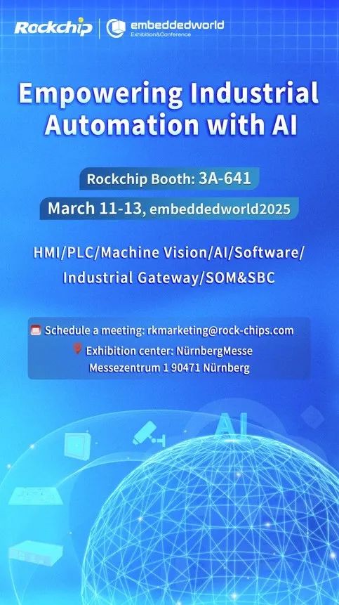 3月11-13日,德国嵌入式展embeddedworld2025在纽伦堡举办,作为嵌入式技术的全球顶级盛会,汇聚近千家参展商与数十万名专业观众,共同展示嵌入式技术的最新成果、探讨行业趋势。米兰网址微携全系列工控芯片方案及商用案例参展,设HMI、PLC、工业网关、机器视觉、端侧AI、软件技术与生态合作伙伴七大展区,展现AI赋能工业自动化多场景应用的硬实力,以及向全球开发者展示完善生态支持的软实力。