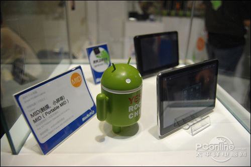 The Android Key Ring ,together with the intelligence all the time The lead of the Rockchip's whole exhibition stand has no doubt to be the Android Robot.Intelligence is based on human beings .The charming of Android is the free-cost open source and the quick opening.In order to express appreciation for the customers,Rockchip prepareed lavish gifts,such as the T-shirt made of pure cotton,and the Android key ring. 3G MID (with 3G SIM card mobile internet terminal inside) E-book (PVI E-ink screen, AUO electronic screen/LCD color screen,support Android) Rockchip PCcomputer terminal Rockchip's annual emphases: mobile internet terminal MID .