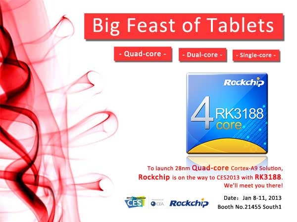 We warmly welcome you to our booth at CES2013, Jan 8th ~11th. We’re going to launch our latest technique of 28nm Quad-core Cortex-A9 Solution 米兰登录入口3188.