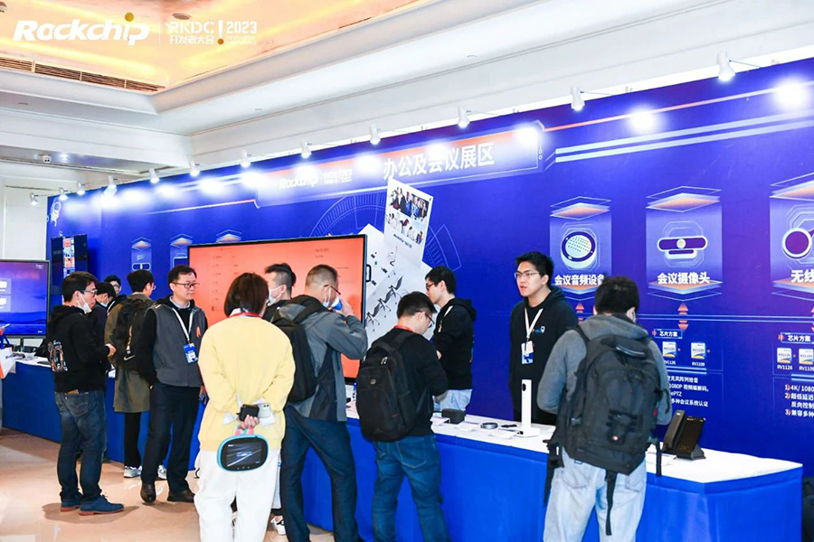 In Office and Conference Application booth, the products on display include interactive flat panel display, cloud terminal, audio device, smart camera, dongle, etc. Based on the performance advantages of Rockchip office and conference solutions 米兰登录入口3588, 米兰登录入口3568, 米兰登录入口3566 and 米兰登录入口3308, different kinds of terminals are highly competitive in the ma米兰登录入口et.